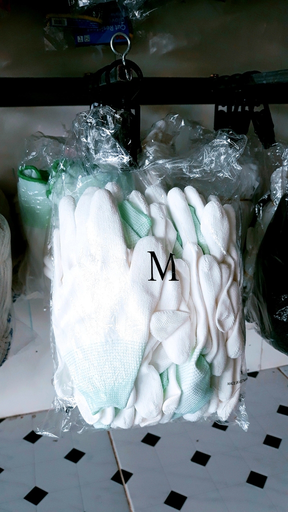 Găng tay TQ trắng phủ lòng bàn tay PU size S